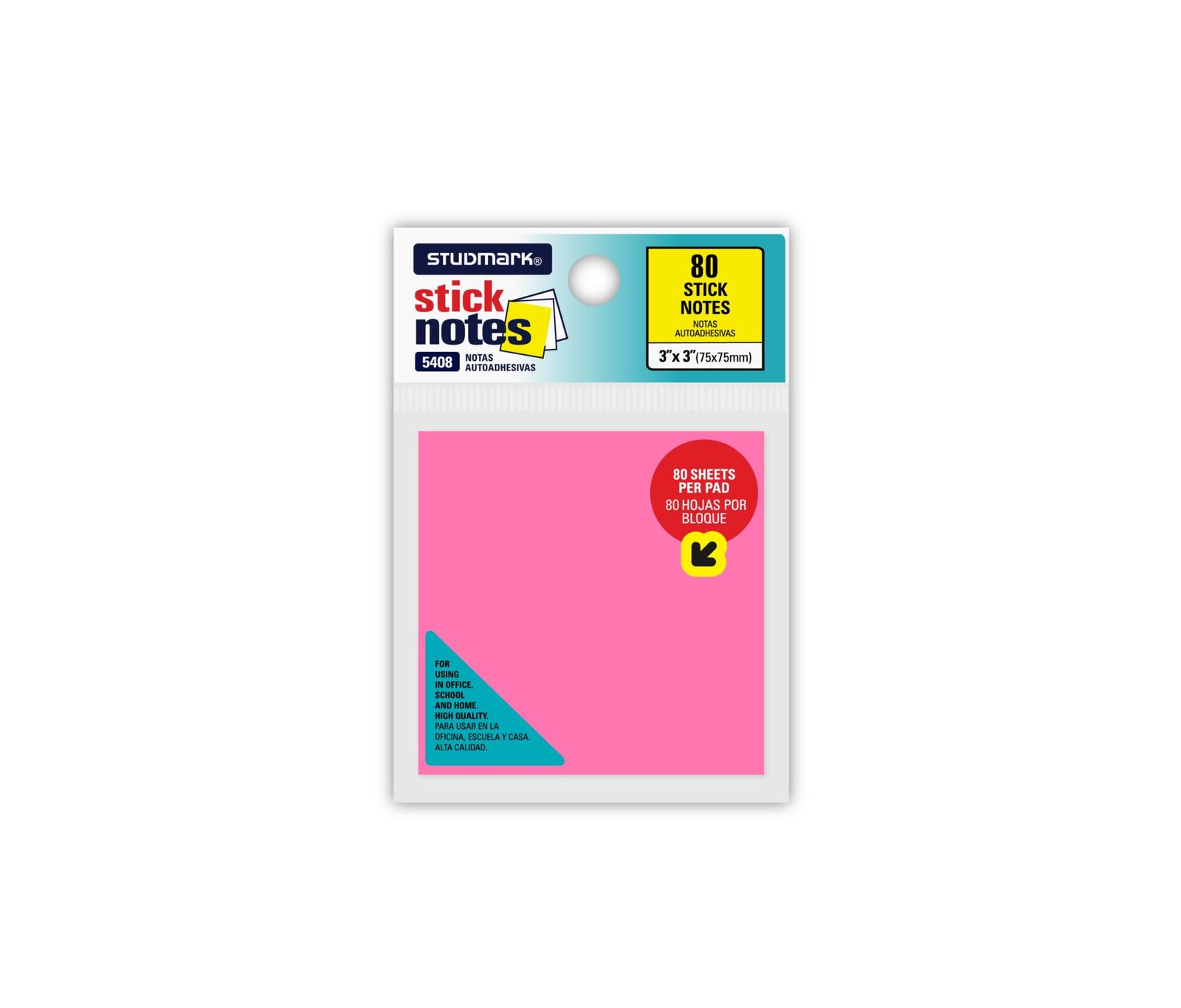 STICKY NOTES, NEON, 3″x3″, PINK (80 SHEETS)