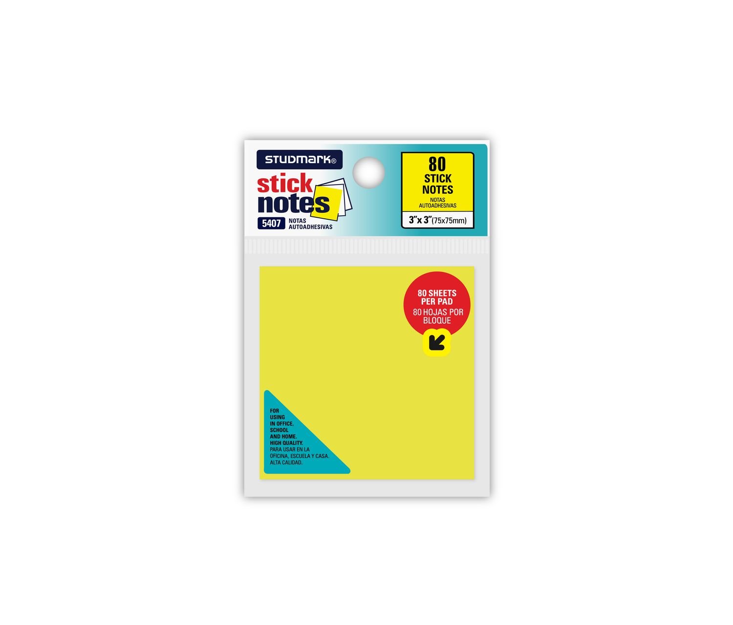 STICKY NOTES, NEON, 3″x3″, YELLOW (80 SHEETS)